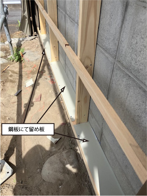 下地の隙間も埋めます。大きすぎる隙間は虫や小動物の侵入を許しますので、留め板でしっかり塞ぎます。(通気は確保)