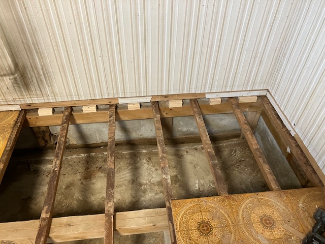 こちらは、根太とよばれる床の下地のズレが原因で凸凹ができている様子です。