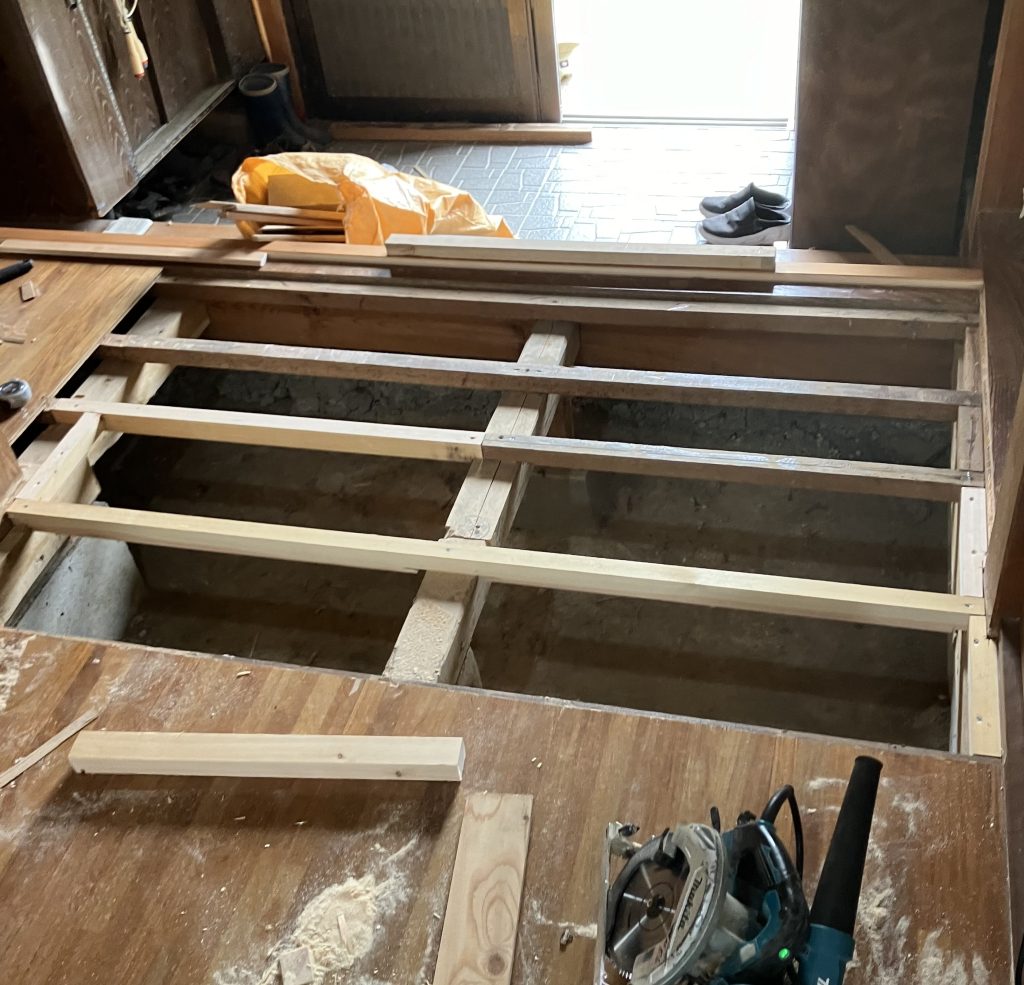忙しくてそのままになっていた傷んだ床、フワフワになって数十年・・・。伺うときには抜ける寸前なんてこともめずらしくありません。  誰に相談したらいかわからないし、思い切りが要りますからね。