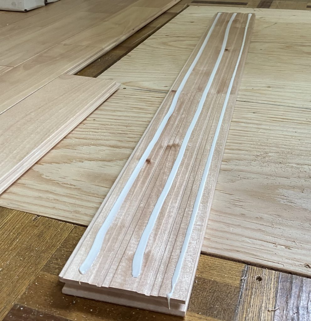無垢フローリングを貼る際には 接着剤を丁寧に塗る