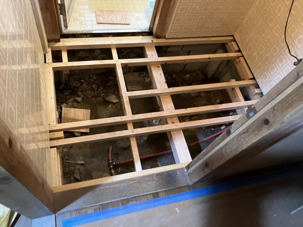 今回は桑名市志知のお客様から依頼いただきました。洗面所の床の修理の様子をお伝えいたします。